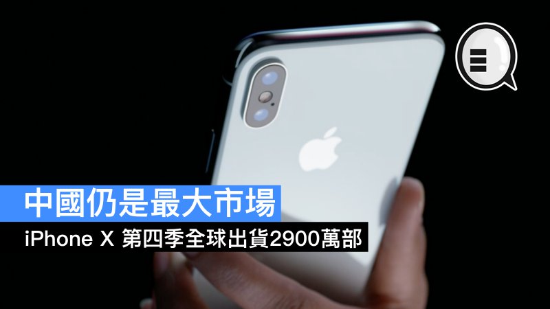 2017年第四季度 iPhone X 以高達 999美元的售價,全球出貨 2900萬部,成為該季度出貨量最高的智能手機。