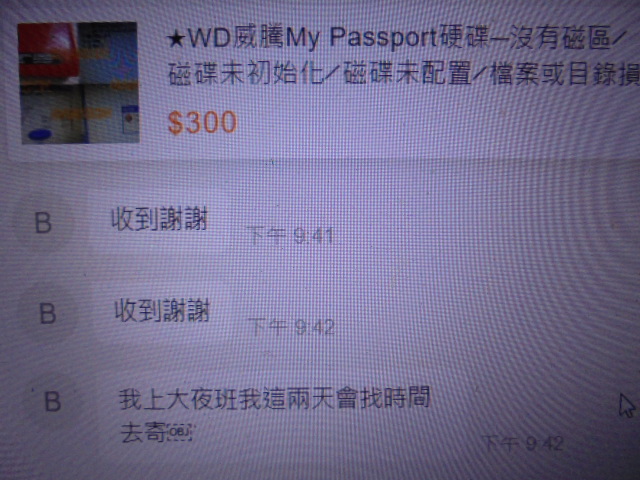 【HGST昱科】WD威騰2.5吋BLACK黑標~1TB裸碟裝在Transcend創見外接盒當外接式資料硬碟→不明原因硬碟讀不到磁區亦無法格式化~要救回硬碟裏家人的工作檔案→露露通文字回覆寄件資訊告知用宅急便~臺中市豐原區-羅先生【說明會找時間寄出】